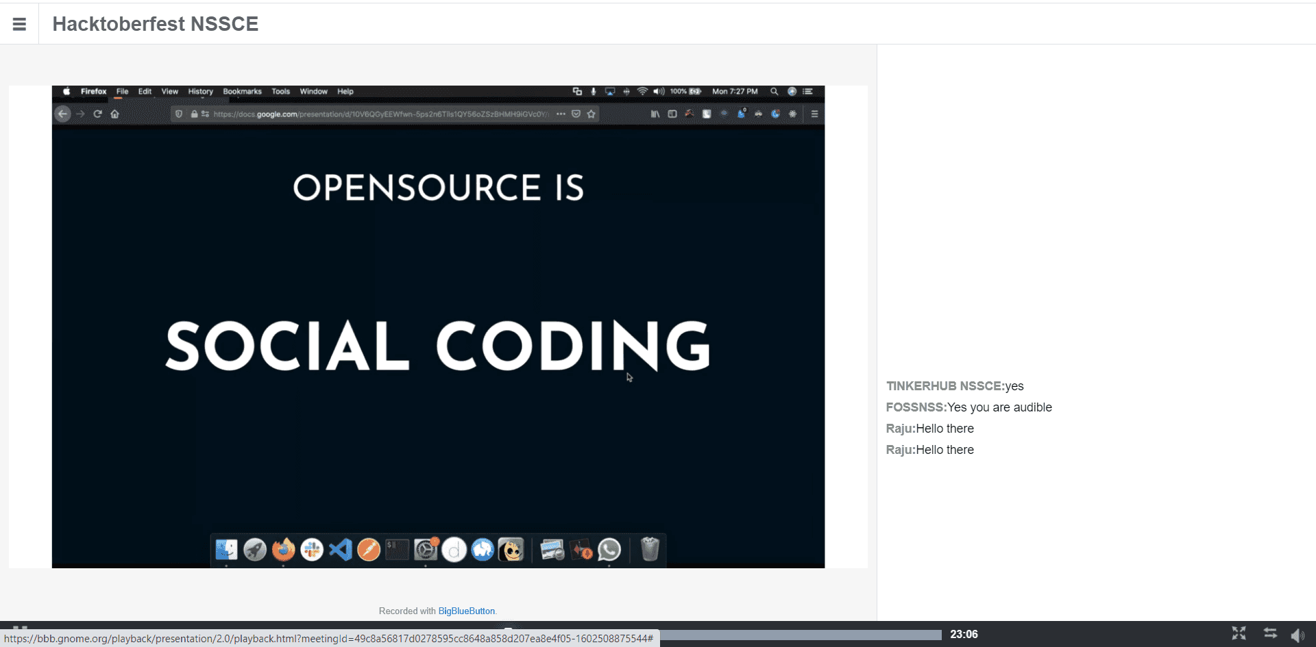 The session concluded with a vote of thanks presented by Poornima J. The meeting was held in the FOSSNSS BigBlueButton instance. The recorded video of the session is available here