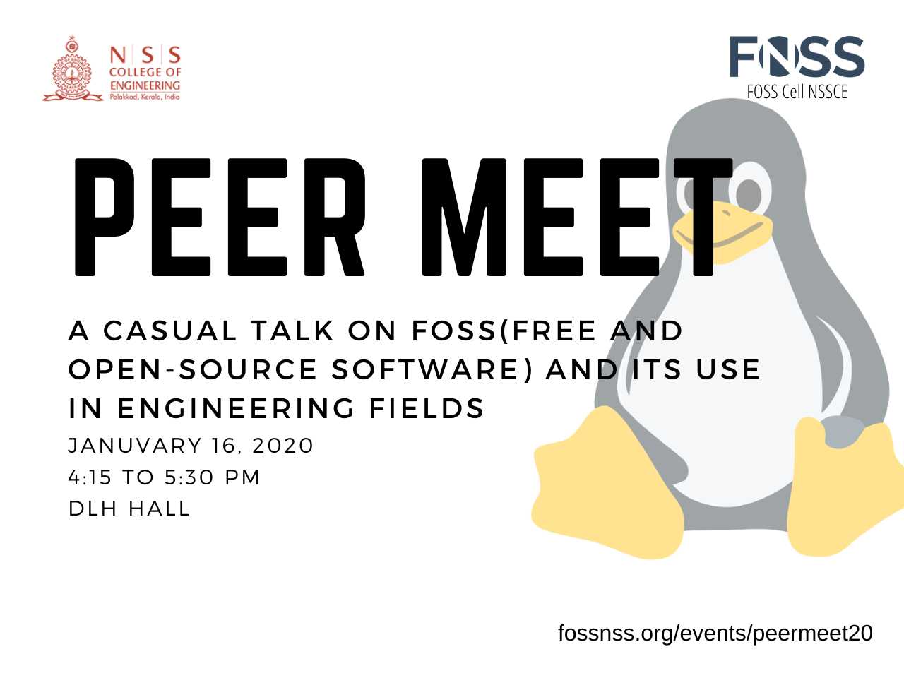 FOSS Cell, NSSCE is conducting a peer meet on the topic "Relevance of FOSS and its use in engineering fields". The event hopes to encompass discussion on applications and wide opportunities of free and open-source software in various engineering sectors. Heartly welcome you all to the same.